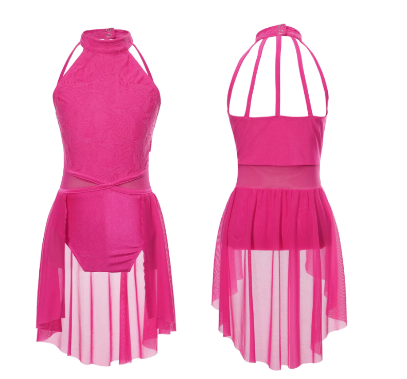 Iefiel Sleeveless Lace Floral Mesh Skirted Leotard